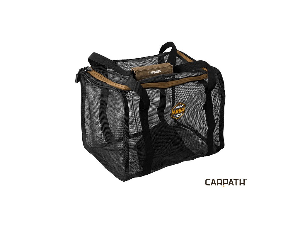 Sieťovaná taška vhodná k prechovávaniu, či dosušeniu boilie na rybačke. Vďaka madlu je jednoducho zavesiteľná, pohodlne sa drží v ruke. Prístup do nej je buď zvrchu, cez veľký zazipsovateľný otvor, alebo zo spodu. Tam sa navyše nachádza tzv. prepadové vrecko so samostatne regulovateľnou zaťahovacou šnúrkou. Napriek kompaktným rozmerom má veľký objem 18,75l. Taška pojme cca 13kg boilies s priemerom 20mm, avšak vzhľadom na sieťovaný materiál neodporúčame takto zaťaženú tašku prenášať na veľké vzdialenosti.