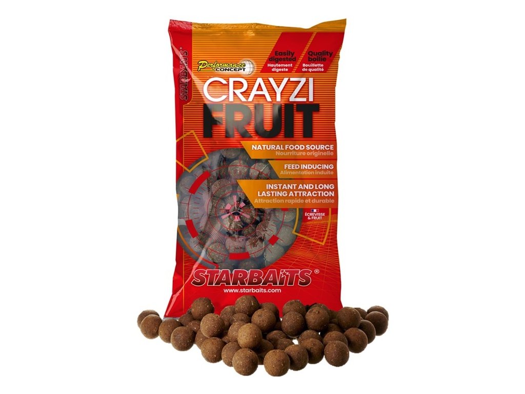 Všetky receptúry série CONCEPT obsahujú čisto prírodné látky bez použitia chemických aróm, farbív či iných umelých ingrediencií. Sú vyvinuté najmä na lov veľkých kaprov.Boilies CRAYZI FRUIT kombinuje dve hlavné zložky, ktoré sú pre kaprov neodolateľné – račia múčku a výťažky z ovocia s prenikavou arómou citrusov. Vďaka vyváženému zloženiu a rýchlej atraktivite je CRAYZIFRUIT boilies vhodné na rýchle krátke výpravy aj dlhodobé masívne zakrmovanie. Je použiteľné celoročne. Boilies je vysoko aromatické s výraznou sladko-slanou a pikantnou mäsitou chuťou, ktoré neodolajú ani tí najopatrnejší kapry.