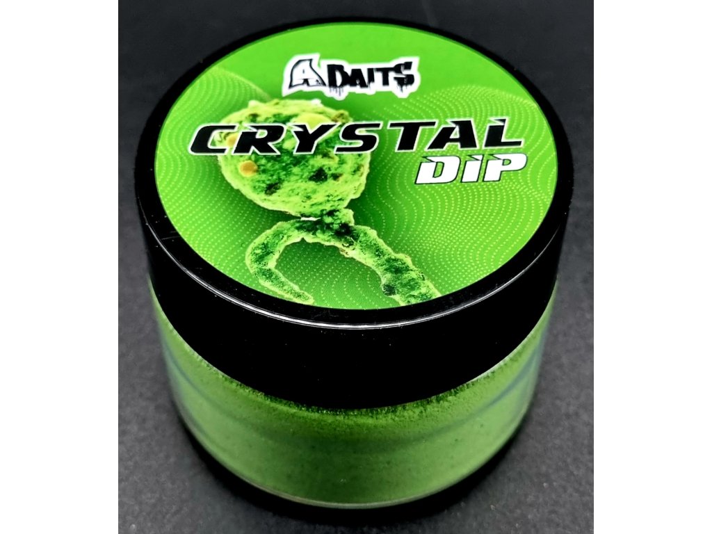 Crystal dip, je špeciálny práškový dip ktorý sa aktivuje s akoľkoľvek tekutinou, najlepšie z vodou. Je využívaný hlavne na pop up ak chcete zatraktívniť nástrahu. Pop Up namočíte do vody, nasledne do crystal dipu. Toto môžete niekoľkokrát zopakovať. Môžete takto zamaskovať aj samotný háčik. Dip vydrží na nástrahe cca 24hod. Obsahuje rôzne druhy semien čím je atraktívny pre kapre.Dodatočné parametre