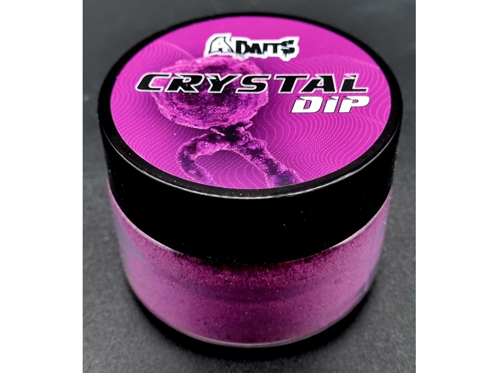 Crystal dip, je špeciálny práškový dip ktorý sa aktivuje s akoľkoľvek tekutinou, najlepšie z vodou. Je využívaný hlavne na pop up ak chcete zatraktívniť nástrahu. Pop Up namočíte do vody, nasledne do crystal dipu. Toto môžete niekoľkokrát zopakovať. Môžete takto zamaskovať aj samotný háčik. Dip vydrží na nástrahe cca 24hod. Obsahuje rôzne druhy semien čím je atraktívny pre kapre.Dodatočné parametre