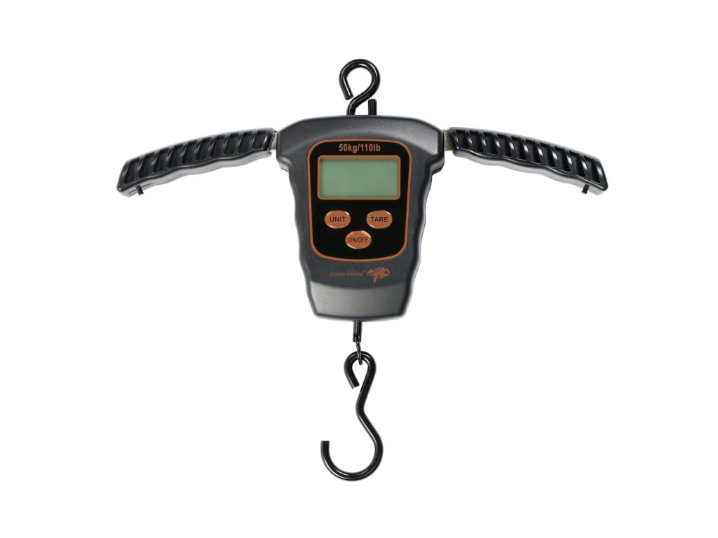 Digitální váha robustní konstrukce s velkým hákem, která je voděodolná a má nosnost do 50kg/110lb.