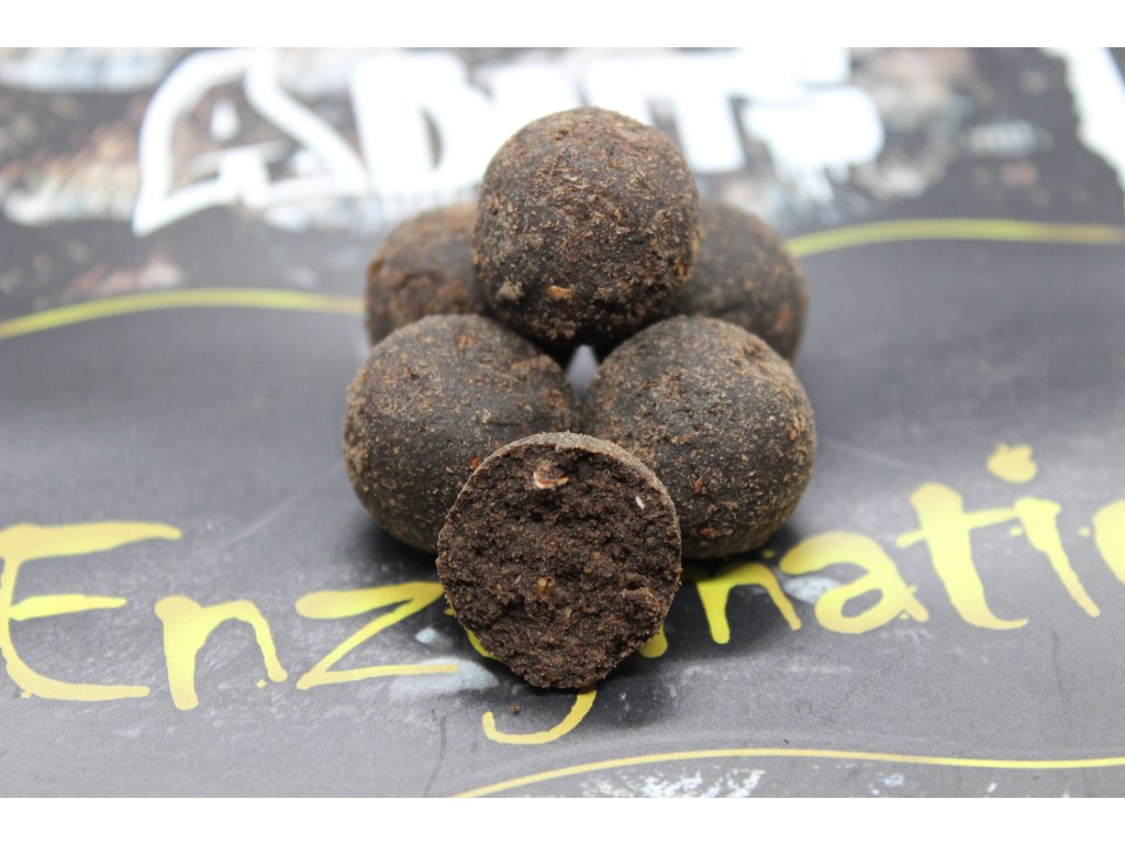Vlastnosti boiliesu : Boilies z rady Enzymatic patrí medzi vlajkovú loď našej značky. Jeho tvorba vznikla pri účasti na európskych pretekov. Pri tvorbe sa dbalo na to aby sa ryba neprejedla, bola stále aktívna a príjmala tento druh potravy. Je vysoko nutričný a zaujímavý pre rybu. Zmes všetkých druhov Enzymatic sú na 80% rovnaké len pri jednotlivom druhu sa zvyšných 20% menia doplnkové múčky, atraktory a tekuté potravy. Preto dokážete na tento druh nástrahy zvládnuť aj dlhé výpravy a keď vám prestane po pár dňoch fungovať jedna príchuť zmeníte len typ a pokračujete v love.