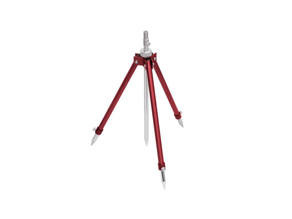 Kompaktný feedrový stojan na prúty s tromi podpornými nohami, navrhnutý v bordovej farbe, charakteristickej pre feedrové produkty z dielne firmy Delphin. Konštrukcia stojana je kompletne vyrobená z hliníku, bez použitia akýchkoľvek plastových častí. Takéto prevedenie minimalizuje možnosť poškodenia, resp. ulomenia niektorej z častí a zaručuje veľmi nízku hmotnosť. Skvelú stabilitu stojana zabezpezpečujú tri teleskopické nohy, ktoré zabraňujú jeho svojvoľnému prevráteniu pri záberoch alebo vetre. Nohy sú ukončené ostrými hrotmi, ktoré umožňujú ich zatlačenie do zeme, čím je možné dosiahnuť ešte lepšiu pevnosť celku. Vďaka teleskopických nohám je možné ho vhodne prispôsobiť aj nerovnému terénu. V strede stojana je osadená rázsoška, ktorej výšku možno nastaviť pomocou masívneho skrutkového mechanizmu. Ten jej po dotiahnutí spoľahlivo zabraňuje akémukoľvek svojvoľnému pohybu. Rázsoška disponuje univerzálnym závitom, vďaka čomu je možné k nej pripevniť akýkoľvek feedrový držiak prútov, hrazdu, prípadne signalizátor. Napriek svojím nenápadným transportným rozmerom je možné stojan prostredníctvom teleskopických nôh, výsuvnému stredovému mechanizmu a taktiež teleskopickej rázsoške vysunúť do úctyhodnej výšky až 150 cm, čo určite milo prekvapí nejedného používateľa. Takáto variabilita spolu s efektným dizajnom z neho robí veľmi praktický produkt za veľmi prijemnú cenu.