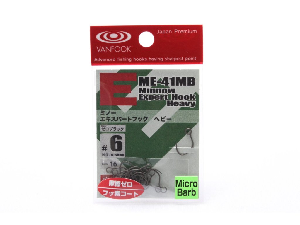 Háčiky Vanfook ME-41MB Minnow Expert HeavyŠpeciálne jednoháčiky určené na woblery od špecialistov na pretekárske háčiky z japonskej spoločnosti Vanfook. Ak chcete osadiť vaše woblery špičkovými jednohákmi zvoľte Vanfook, to najlepšie na trhu. Model ME-41MB je vyrobený z pevnejšieho drôtu a je skvelou zbraňou na lov trofejných väčších rýb. Háčiky Vanfook s označením MB sú osadené mikro-protihrotom šetrným k zdolávanej rybe.Dodatočné parametre