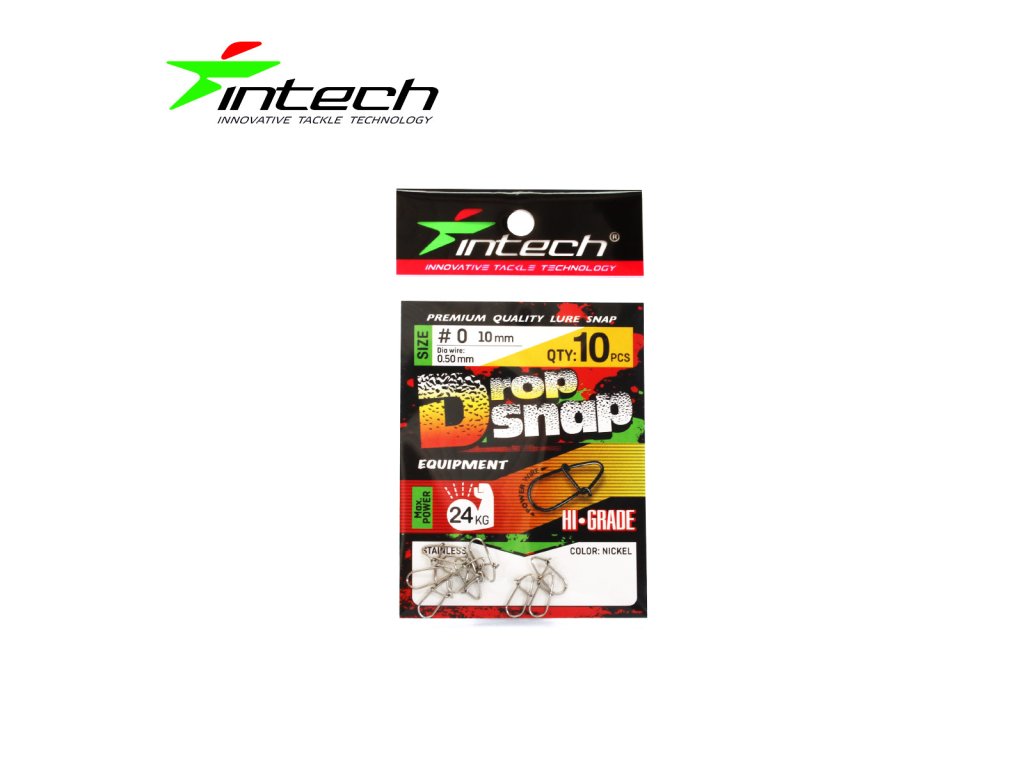 Karabínky Intech Drop Snap sa vyznačujú vysokou spoľahlivosťou. Sú vyrobené z vysoko kvalitného a elastického drôtu, odolnému voči korózií. Vďaka dobre navrhnutému tvaru je záťaž na karabínku rozložená po celej ploche, a to eliminuje jej nechcené otváranie. Pevnosť karabíniek Drop Snap suverénne prevyšuje výsledky karabíniek rovnakej veľkosti od iných výrobcov. Séria Drop Snap je najlepšou voľbou pre tých, ktorí chcú loviť veľké ryby.Dodatočné parametre