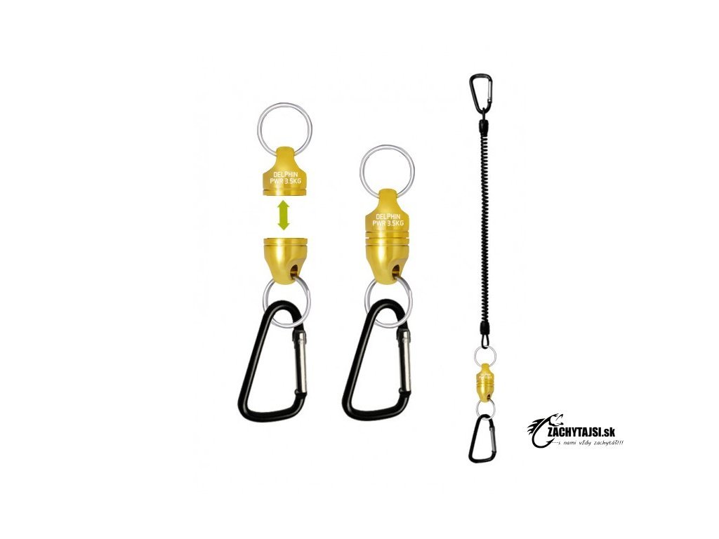 Vysoko praktická pomôcka pre každého rybára ktorý chce mať podberák stále po ruke. Oproti predchádzajúcemu modelu sme vylepšili dizajn. Vďaka výraznejšej farbe viac nebude problém nasmerovať oproti sebe 2 protikusy. O všetko ostatné sa postará extrémne silný magnet s nosnosťou až 3,5kg na plochu menšiu než 1cm štvorcový. Tento magnet je pripevnený ku karabínke oceľovým okom. To robí z tohto celku magnetickej spojky pre podberák nepostrádateľný doplnok ktorý je vždy pripravený na akciu. V balení sa nachádza grátis aj elastický (10-85cm) pogumovaný popruh ktorý je možné pužiť k pripnutiu akýchkoľvek potrebných vecí, napr.: peánu, klieští...