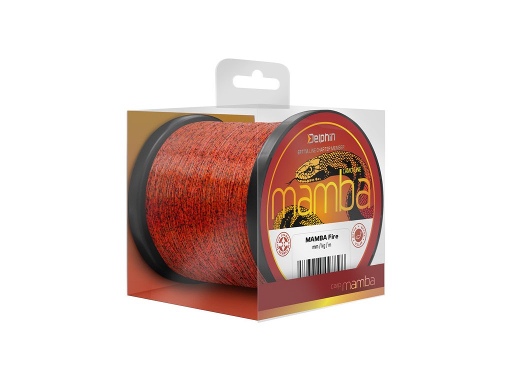 Excelentný kaprársky vlasec s unikátnym 3D vzorom. MAMBA disponuje vynikajúcimi vlastnosťami ako pevnosť a nosnosť v uzle. Vďaka svojmu jedinečnému kamuflážovému prevedeniu rýchlo splynie s okolitým prostredím. Jeho pevnosť a odolnosť voči oderu ho predurčujú na použitie aj do náročných podmienok a jeho mimoriadne hladký a jemný povrch umožňuje využitie pri ďalekom nahadzovaní. Vďaka týmto vlastnostiam je Delphin MAMBA považovaný za univerzálny kaprársky vlasec, ktorý spĺňa tie najnáročnejšie požiadavky a na ktorý sa môžete spoľahnúť v každej situácii.