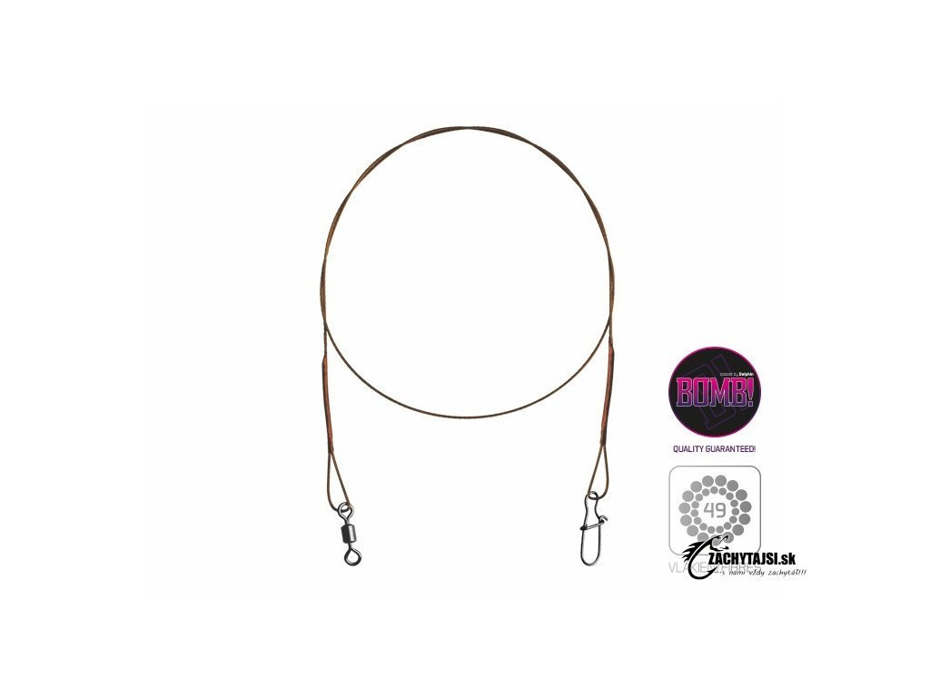 Oceľové lanko prívlačovej rady BOMB! od značky Delphin je vyhotovené pletením až neuveriteľných 49 vlákien (označovaných aj ako 7x7) z nehrdzavejúcej ocele. Toto lanko je špecifické svojou výnimočnou jemnosťou, ale aj nekompromisnou odolnosťou voči ostrým zubom a prekážkam! Vďaka vlastnostiam tohto lanka je s ním akákoľvek manipulácia veľmi príjemná a ľahká. Navyše jeho materiálové zloženie umožňuje nástrahu odprezentovať na špičkovej úrovni aj tým najopatrnejším predátorom!