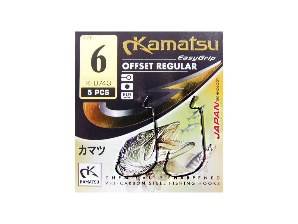 Špeciálny druh háčika pre nastraženie gumených nástrah. Vzhľadom k jeho profilu sa hák ľahko skryje vo vnútri nástrahy. Tieto háčiky sú určené predovšetkým pre rybolov metódou Drop shot alebo v kombinácií s čeburaškou. Ideálne na lov v extrémne zarastených vodách alebo na lov v prekážkach. Háčiky KAMATSU sú dvojstupňovo chemicky ostrené pre maximálnu ostrosť. Extra kvalitná karbónová oceľ VHI-Carbon Steel zaručuje maximálnu odolnosť proti tupeniu aj pri veľmi častom používaní. Vyrábané sú výhradne Japonskou technológiou a každý kus je elektronicky testovaný! Háčiky Kamatsu sa netupia a neohýňajú, dokonale držia maximálnu ostrosť. Charakteristické sú dlhotrvajúce extrémnou ostrosťou hrotu. KAMATSU sú jedny z najpopulárnejších háčikov na Európskom trhu.