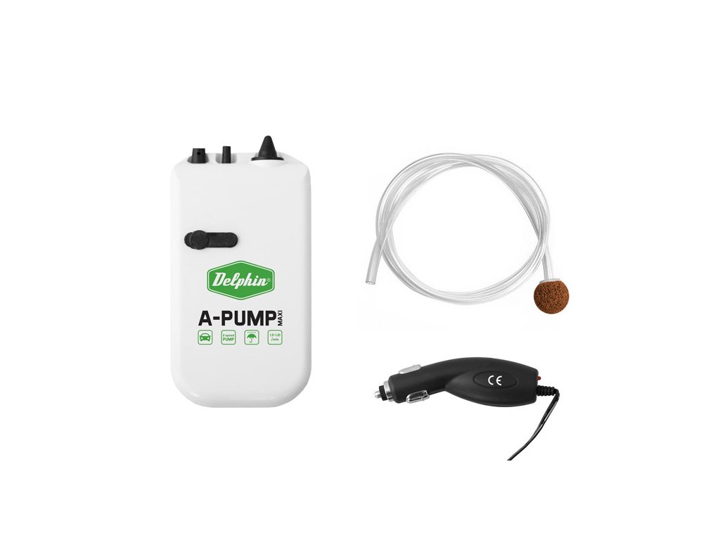 Okysličovač A-PUMP MAXI je určený na prechovávanie nástrahových rybiek s výdržou až 80 hodín! Napájanie je riešené dvoma 1,5V batériami typu LR20, alebo pomocou adaptéra do autozapaľovača, ktorý je súčasťou balenia. Okysličovač má dve rýchlosti a vzduch dodáva intenzitou 1 až 1,2l za minútu. Súčasťou samotného vzduchového motorčeka je záves na vedro so šírkou 1,5cm, vďaka čomu môže byť vzduchovač umiestnený priamo na vedre. V balení nájdete aj gumenú hadičku so vzduchovacím kamienkom. Výdrž batérii je úctyhodných 80 hodín, vďaka čomu môžete vaše nástrahy udržať v dobrej kondícii počas dlhej doby. A-PUMP MAXI je odolný voči dažďu.