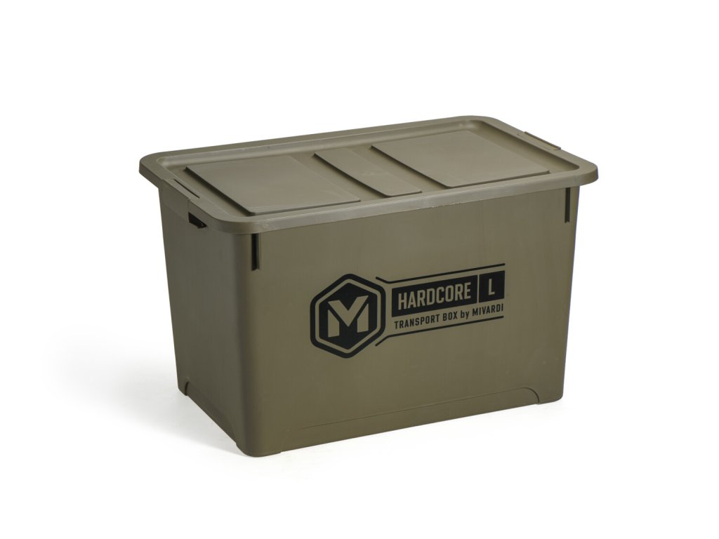 Hardcore Transport Box představují spolehlivé a bezpečné řešení pro přepravu a skladování nejen rybářského či outdoorového vybavení. Tyto uzavíratelné, odolné a stohovatelné boxy jsou dostupné ve třech různých velikostech. Zajišťují perfektní organizaci a pořádek u vody, při přepravě nebo v garáži. Velkou výhodou je jejich "hardcore" provedení. Robustní nárazuvzdorný plast odolává mechanickému poškození. Speciálně tvarované víko je vybaveno zpevňujícími prolisy, které zároveň napomáhají zajistit stabilní polohu boxů při jejich stohování na sebe. Víko díky svému nízkému profilu kopíruje horní hranu boxu a zbytečně nevyčnívá. Nedochází tak k plýtvání místem při naskládání více boxů na sebe. Robustní zámky víka jsou snadno ovladatelné a nepřekážejí ani v případě manipulace s otevřeným boxem bez víka. Při uzavření zámky bezpečně drží víko na svém místě i v případě otřesů nebo při převrácení boxu. Prázdné boxy je velmi snadné skladovat - pasují totiž jeden do druhého. Velký a střední box mají shodný půdorys a liší se pouze výškou. Střední box je svou výškou ideální pro zasunutí pod lehátko. Malý box má poloviční půdorys a skvěle se hodí na drobnější příslušenství, do člunu i jako box na nástrahy.