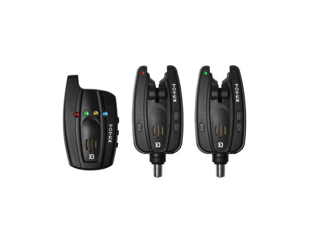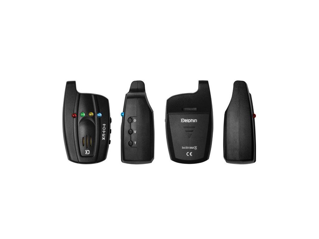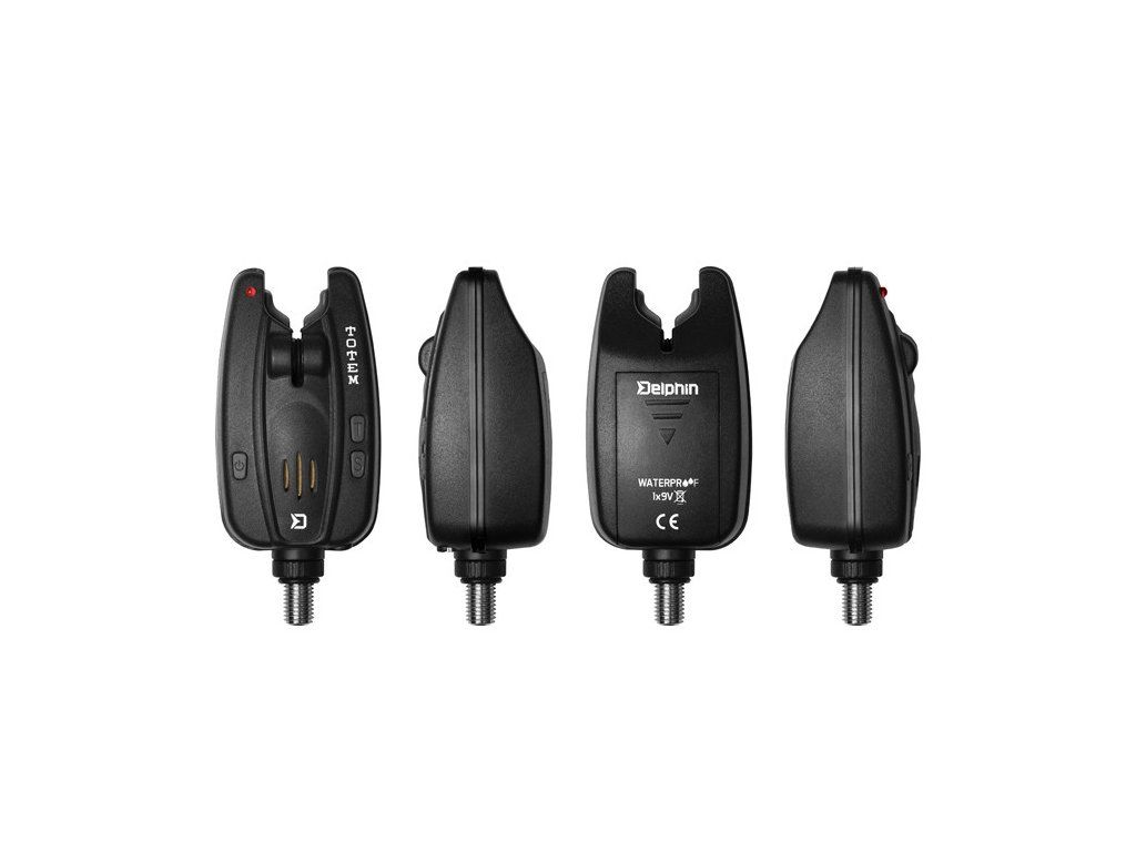 Extrémne kompaktné rozmery signalizátora a prijímača v ergonomickom tvare. Delphin TOTEM ponúka úplnú vodeodolnosť signalizátora a prijímač so skvelým dosahom až 150m v závislosti od okolitých podmienok. Signalizátor má ultra jasnú LED diódu s veľmi dlhou výdržou. Je napájaný 9V batériou čo zabezpečuje jeho dlhú dobu prevádzky. Dobrou vychytávkou je alarm, ktorý krátkym pípnutím a svietením LED diód upozorní na zníženie stavu kapacity batérie pod 5V (takisto pípne aj prijímač). TOTEM ponúka možnosť otestovania všetkých jeho funkcií. Má 4 úrovne hlasitosti vrátane tichého režimu, 4 rôzne tóny a 4 úrovne citlivosti. V tme určite oceníte možnosť zapnutia nočnej diódy. Vstup pre 2,5mm jack umožňuje pripojenie svietiaceho signalizátora záberu. Hrubé pogumovanie v časti kontaktu prúta so signalizátorom zamedzuje poškodenia prúta. Signalizátor po zábere svieti 15 sekúnd (takisto prijímač). Prijímač je napájaný 3 kusmi AAA batérií. Na zadnej strane má umiestnený odopínateľný klip pre upevnenie napríklad za opasok. Samozrejmosťou je tvrdý transportný kufrík pre bezpečný transport a ochranu sady mimo sezóny, tento kufrík pojme sadu až do konfigurácie 4+1. Prijímač má 5 úrovní hlasitosti vrátane tichého módu a možnosť nastavenia 4 úrovní tónu. TOTEM je kvalitný signalizátor so všetkými funkciami, ktoré využijete pri rybačke. Nočná LED dióda, vodeodolný alarm aj prijímač či test funkcii s upozornením na slabé batérie. To je iba pár výnimočných funkcii signalizátora Delphin TOTEM.