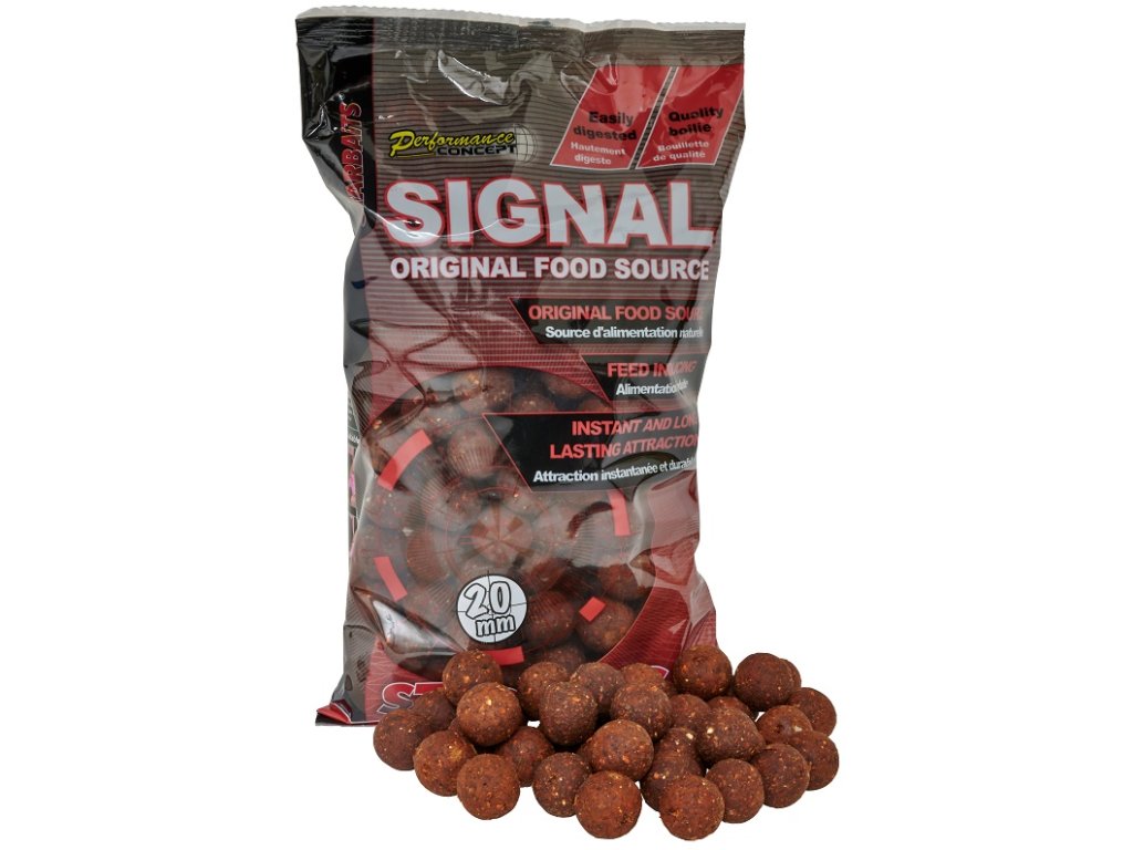 SIGNAL je nová koncepcia boilies vytvorená z kombinácie viacerých druhov výberových rybacích múčok a s obsahom veľkého množstva múčky zo sladkovodného raka. Hrubá štruktúra je tvorená škrupinami z kôrovcov. Boilies je bohaté na extrakty sladkovodných živočíchov ako je patentka, gamarusy, mušle a pod., ktoré z neho vytvárajú neodolateľnú potravu pre kapra. Ľahkú stráviteľnosť a zvýšenie atraktivity mu dodáva špeciálna zmes korenia vrátane Robin Red. Toto boilies pri testovaní dosahovalo vynikajúce výsledky na silne prechytaných vodách, na vodách s bohatým množstvom prirodzenej potravy a na pretekoch vo veľkej konkurencii nástrah. Kapry pri pravidelnom vnadení rýchlo dosiahnu návyk a systematicky sa vracajú na kŕmne miesto. To znamená podstatne viac rýb na Vašich udiciach.Dodatočné parametre