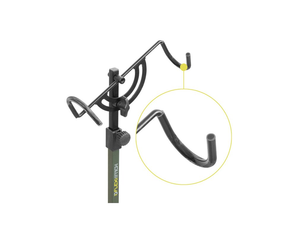 Vrchná časť držiaca prút je vyformovaná z hrubého a pevného drôtu čiernej farby, ktorý je špecificky zahnutý tak, aby doňho bolo možné zasunúť akýkoľvek rybársky prút. Predné aj zadné zahnutie je navyše potiahnuté gumou, čo zamedzí posúvaniu a zabráni poškodeniu prúta. Držiak je tiež polohovateľný pomocou kyvadlového mechanizmu, takže si ho viete nastaviť do rôznych uhlov, či už špičkou ku hladine, vodorovne alebo takmer kolmo nahor.