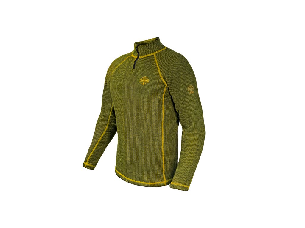 Disponuje dlhými rukávmi a jeho výhodou prispievajúcou k udržaniu telesnej teploty je vyvýšený golier so zipsom. Navyše je zips z vnútornej strany kompletne prekrytý látkou, vďaka čomu nehrozí žiadny nepríjemný dotyk na krku. Spodná časť je mierne predĺžená, aby dochádzalo k ideálnemu krytiu so spodkami Delphin TUNDRA Manor aj pri pohybovo namáhavejších aktivitách.