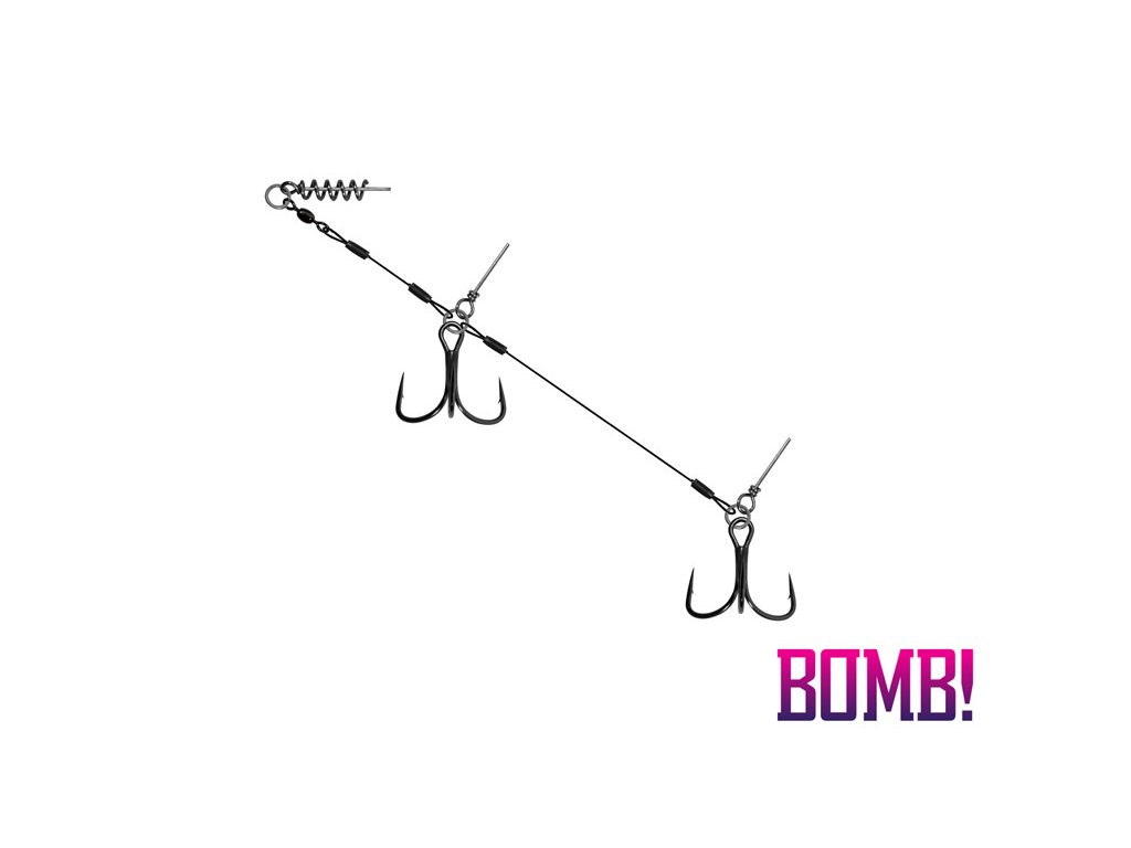 Ak ste priaznivcami veľkých nástrah tak vo vašej výbave nesmie chýbať BOMB! Twisto MultiTRAP. Systém nastraženia je vďaka skrutke, ktorú osadíte priamo do nástrahy jednoduchý a veľmi rýchly. Dva silné a ostré trojháky, upevníte do nástrahy pomocou bodcov na požadovanú vzdialenosť. Celý systém MultiTRAP je kombinovaný z tých najkvalitnejších komponentov aby sa čo najviac znížilo riziko straty Vášho kapitálneho úlovku. Systém MultiTRAP je nezaťažený a umožňuje si doladiť nástrahu podľa vašich predstáv. Či už pridaním čeburašky, prídavného závažia, alebo je možné nástrahu používať aj bez závažia v plytkých vodách.