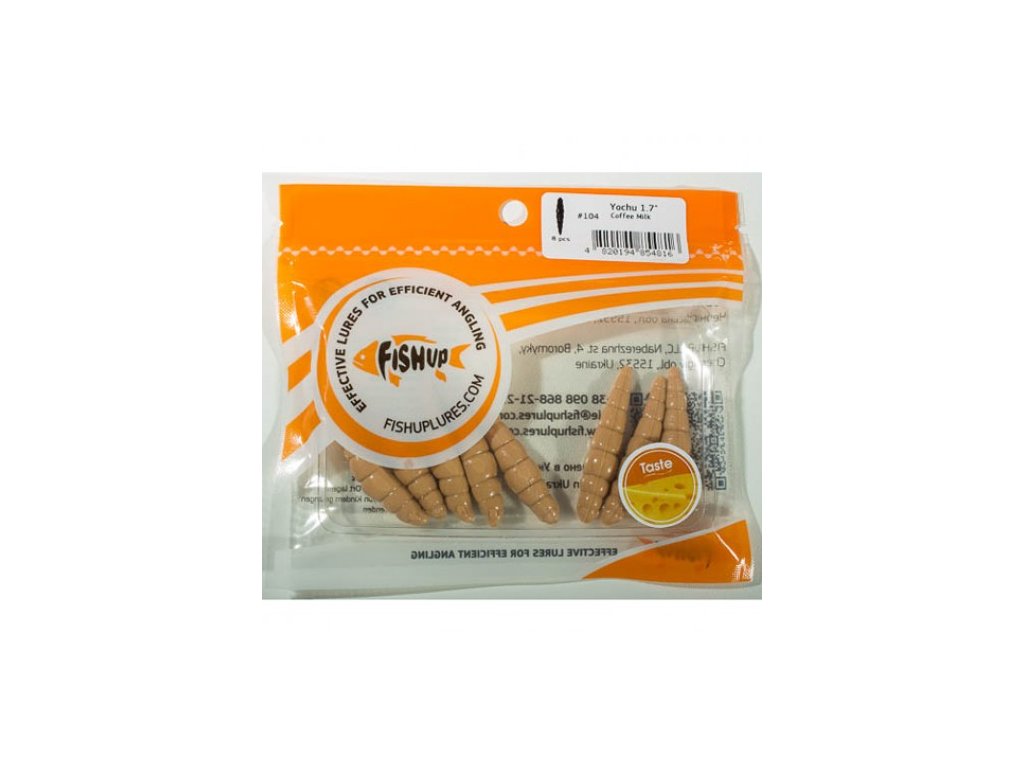 Yochu od FishUP je výrazne aromatizovaná larva ideálna na lov pstruhov v prúde (stream) aj na lov v stojatej vode (area). Yochu je podobne ako Pupa od FishUP vyrobená z mäkšieho materiálu ako ostatné nástrahy, má veľmi silnú arómu, vďaka realistickému tvaru vábi aj apatické pstruhy, ktoré ignorujú rýchlo poťahované nástrahy. YOCHU je navrhnutá tak aby ju pstruh zodvihol z dna práve vtedy keď už je apatický a neloví rýchlo sa pohybujúcu korisť, na rozdiel od obľúbenej Pupy má trochu užší a pohyblivejší chvost.Dodatočné parametre